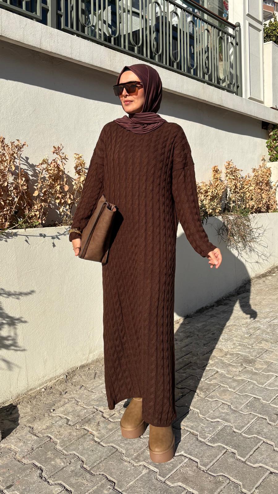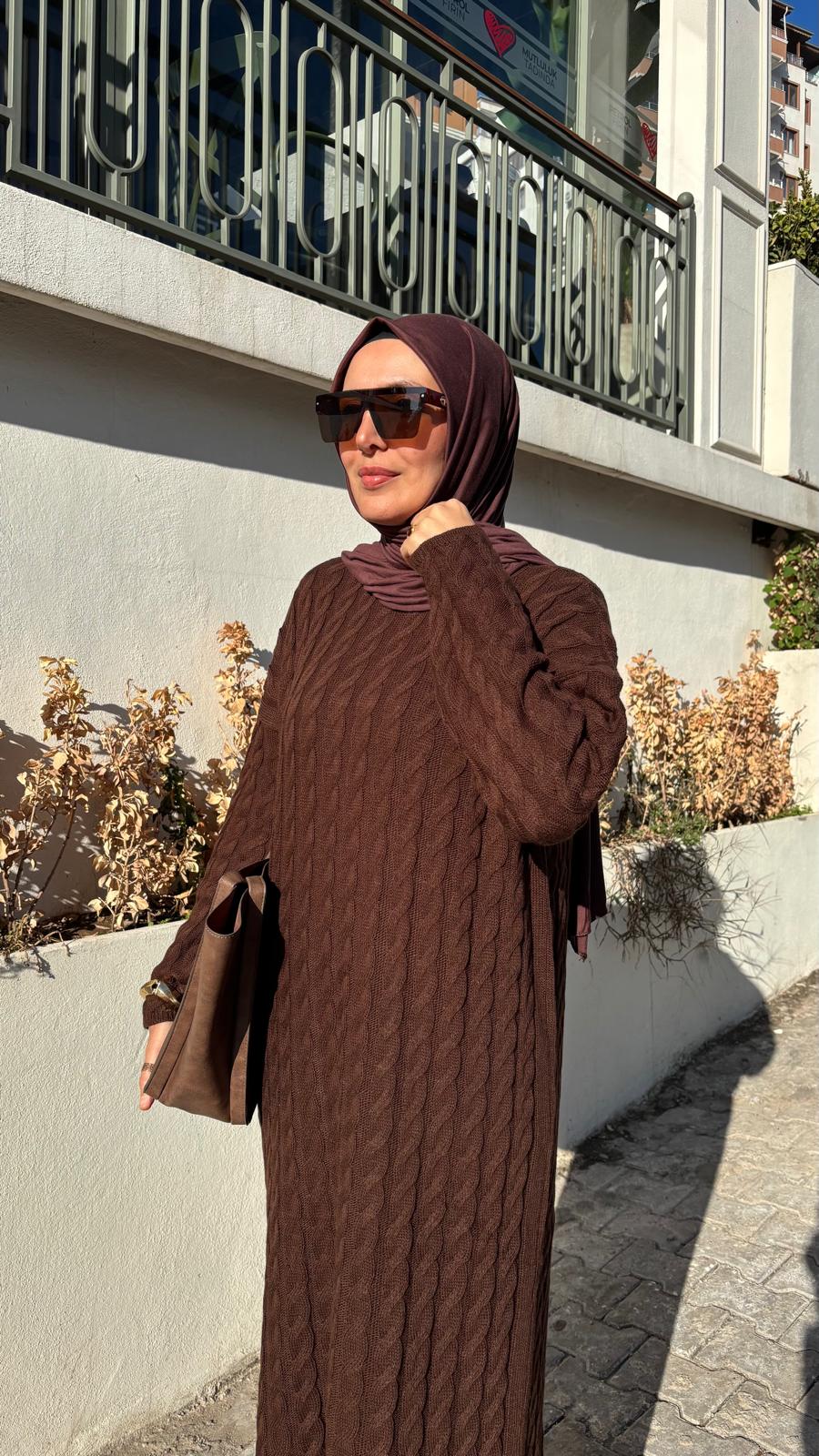 örgü detaylı triko elbise